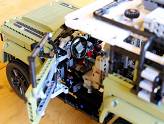 Ce complexe système prend une place folle dans le Defender, et pourtant, cela n'a pas été au détriment de la fidélité de la reproduction, puisque le l'intérieur du 4x4 a lui aussi été travaillé pour ressemble à l'original. Le set LEGO contient une sellerie 4 places, un tableau de bord, ainsi qu'un moteur 6 cylindres en ligne sous son énorme capot avant. Le moteur est évidemment connecté à l'ensemble de transmission pour s'animer lorsque le 4x4 roule.