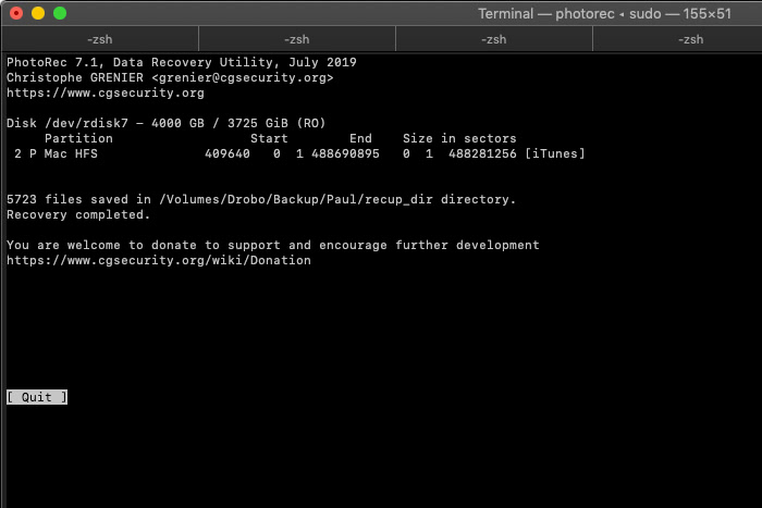 Je passe sur PhotoRec pour tenter une récupération des données du disques.